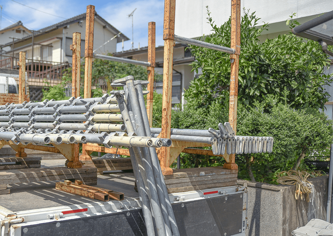 共用部分や隣接する建物との距離を考慮しながら、慎重に足場を組みます。安全かつ効率的に作業できるよう、アパートの構造に合わせた設置を行います。